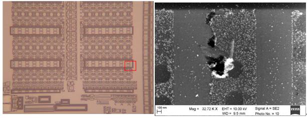 Fig. 2: DECAP and SEM found the Small voltage breakdown of IC