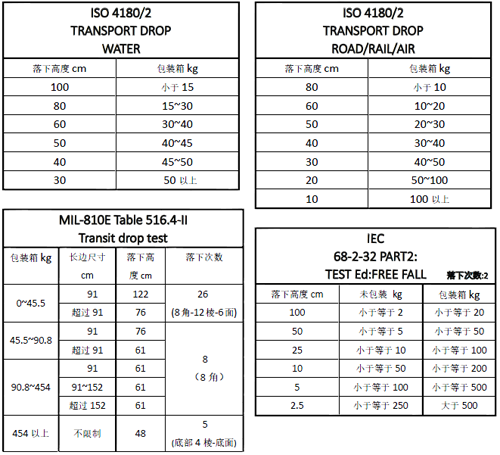的重量來決定(可參考IEC68-2-32或ISTA 2A/B等等),而落下表面應(yīng)該是混凝土或鋼制成的平滑,堅硬的剛